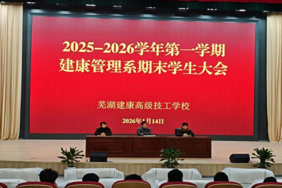 1月14日,建康管理系期末学生大会学校第九报告厅顺利召开。本次会议以“学生素养养成教育”为主题,系统总结本学期学生管理成效,探索新学期管理优化路径。系部领导、全体班主任及1000多名学生参会。